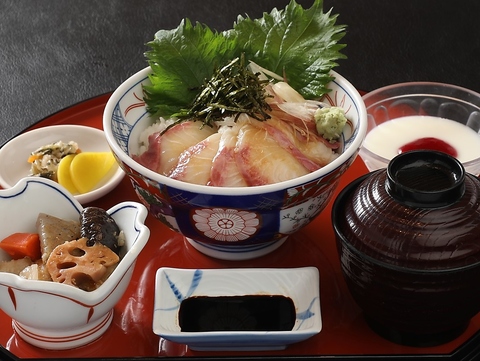 【ディナー】●清水特製海鮮丼セット(茶碗蒸し、味噌汁、香の物付き)・・1,518円 【ランチ】●生サーモン丼膳・・1,298円 ●ねぎトロ丼膳・・1,078円 ●ヒラマサ丼膳・・1,188円 ※各種(茶碗蒸し、味噌汁、漬物、杏仁プリン付き)●鰻ちらし丼膳(茶碗蒸し、味噌汁、漬物)・・1,298円