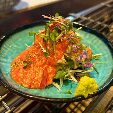 - ※席料・チャージを含めまして、お通しをご提供しております(380円:税込418円) ※当店の大和肉鶏の肉刺しにつきましては、奈良県庁が運営する公的機関である、大和郡山の『奈良県食品衛生検査所』で、毎朝厳正な安全検査を1羽1羽すべてクリアし、充分な安全検査を通過したもののみをご提供しておりますが、一般的に食肉の生食はリスクがあるとされております。抵抗力の弱い方はお控えくださいませ。