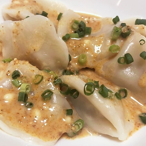 胡麻ダレを絡めたこってり水餃子