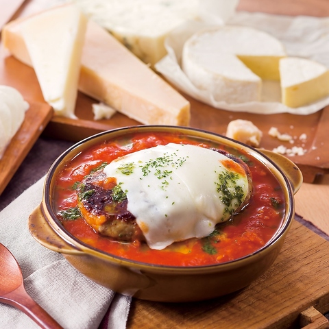 トマトの酸味ととろけるモッツァレラ、ハンバーグの旨味広がるドリアです。