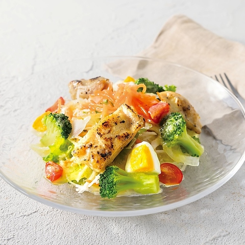 ジューシーに焼き上げたチキンを彩り豊かな野菜とともに。ヘルシーなのに食べ応えのある、軽やかな味わいのサラダです。