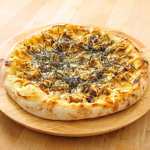 甘辛てりやきチキンと明太マヨが絶妙!満足感たっぷりのピザです。