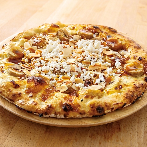 バナナのやさしい甘さとキャラメルの香ばしさが楽しめるスイーツピザです。
