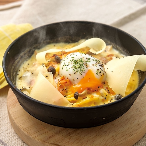 【パルメザン】パルメザンのカルボナーラ風ドリア温玉添え