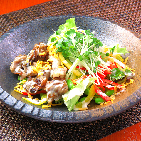 鹿児島県薩摩半島で飼育される巨大ブランド鶏『さつま極鶏大摩桜は、モモ、ムネともに適度なサシが入り、弾力と旨味が特徴◎低温で長時間ゆっくり火を入れ、生に近い食感と旨味を引き出しております♪ご宴会コースは2時間飲み放題付き2980円(税込)~ご用意しております。何名様~でも完全個室へご案内致します。