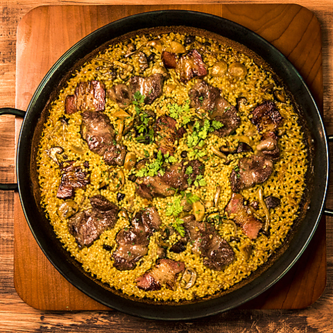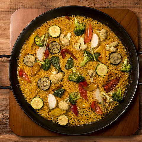 パエリア発祥の地バレンシアを代表的するパエリア。うさぎや鶏肉の旨味を米にうつしエスカルゴやインゲンなどの食材を加えるのがバレンシア風。日本ではなかなか味わえない“本場”のパエリアをぜひご賞味ください。