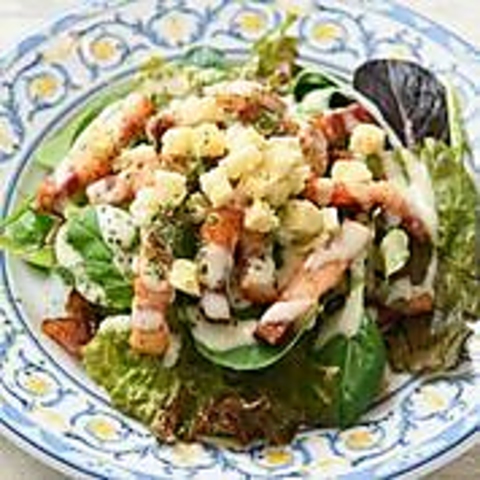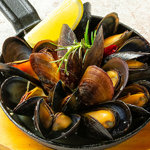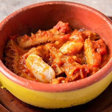 プリプリの海老をオリーブオイルとガーリックでじっくり煮込んだスペインの伝統的な料理。香ばしい香りとともに、ピリ辛の赤唐辛子がアクセントとなり、食欲をそそります。バケットと一緒にお召上がり下さい。※バケット(380円税込)