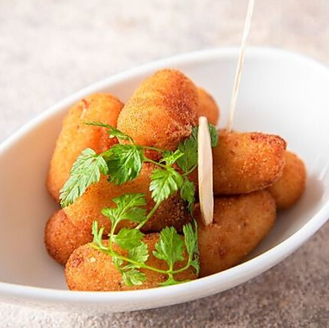 スペインバルでは定番の肉団子の煮込みをクリームソースでアレンジ!お酒のおつまみやバゲットと合わせてお楽しみください!お子様にもおすすめです◎
