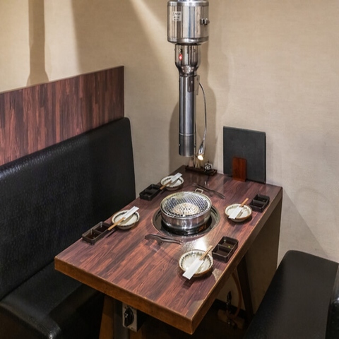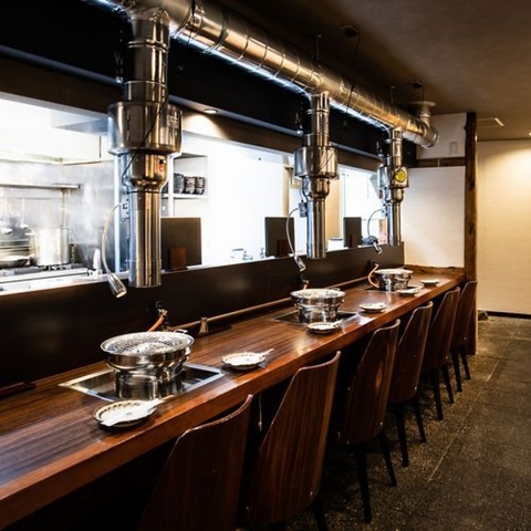 都会の喧騒を忘れさせる、黒を基調とした大人の空間で、落ち着いた雰囲気の店内です。職人の鮮やかな手さばきが楽しめるライブ感満載のカウンター席では、肉の香りが立ち上る瞬間から、熟練の技術が光る一皿が目の前で楽しめます。さらに贅沢な時間を大切な方と静かに過ごしたい方には、半個室を完備。至福の時間を心ゆくまでお過ごしください。