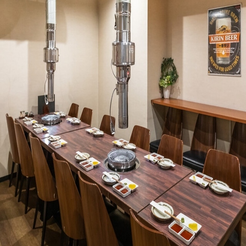 黒を基調としたシックな店内に、木の温もりが調和する洗練された空間。目の前で職人の鮮やかな手さばきが楽しめるカウンター席や、周りを気にせず寛げる半個室も完備しています。厳選された赤身ヒレや焼きしゃぶなど、自家製だれが引き立てる極上の肉質を、厳選ワインと共に。大切な方と記憶に残る贅沢な時間を「うましか」でお楽しみください。