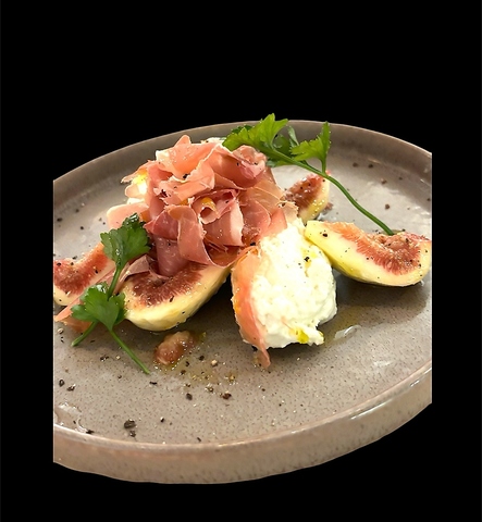 自家製ブルーチーズのムース フレッシュなイチジクと削りたて生ハム添え