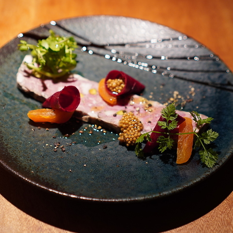 フレンチシェフが作る子羊の小料理をメインとしております。羊をメインにクラシックなフレンチの技法で作ったお肉のテリーヌ。