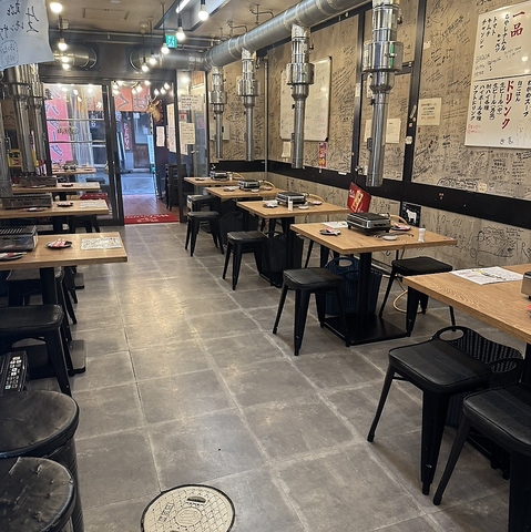 ≪幅広いシーンにおすすめ◎≫昔ながらの大衆焼肉店の雰囲気でこだわりのお肉をお楽しみください!ご提供するお肉はボリューム満点!テーブル席は2名様掛けを5卓、4名様掛けを5卓ご用意しています。各テーブルに設置している焼き台で、自分好みの焼き加減でお召し上がりください◎