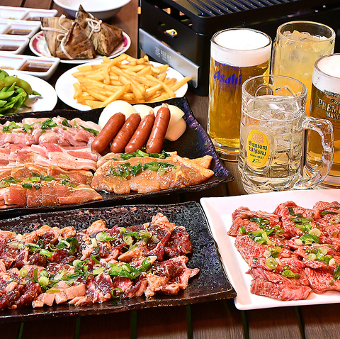 広々とした屋上ビアテラスは、会社の飲み会や歓送迎会、グループでの宴会にもおすすめ。焼肉コースは3,000円から、飲み放題と組み合わせて気軽に楽しめます。鹿児島中央駅から徒歩3分で集合しやすい立地も魅力です。