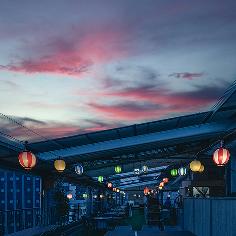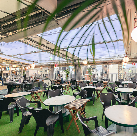 屋上でありながら屋根付きのビアテラスなので、雨の日や降灰時でも安心してご利用いただけます。気軽に楽しめる焼肉コースと飲み放題で、友人との集まりや仕事帰りの一杯にもぴったり。季節のフェア料理も楽しめます。