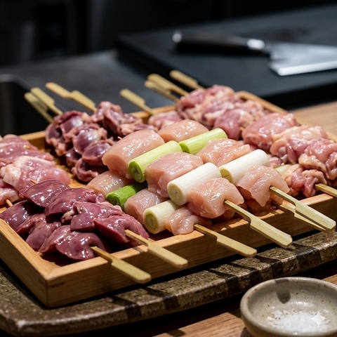 鮮度抜群の鶏肉を職人が一本ずつ丁寧に串打ち。焼く前から伝わる肉の厚みと輝きが、本格派の証です。