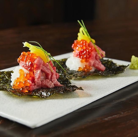 焼肉以外のメニューも豊富にご用意。中でも「黒毛和牛といくらのとろたくキンパ」は当店の人気メニュー!たくあんの食感ととろけるお肉の相性が絶品◎他にもA5黒毛和牛のユッケも女子会や会社宴会に人気です!居酒屋の様にお気軽にお楽しみいただけますので、是非一度ご賞味ください♪