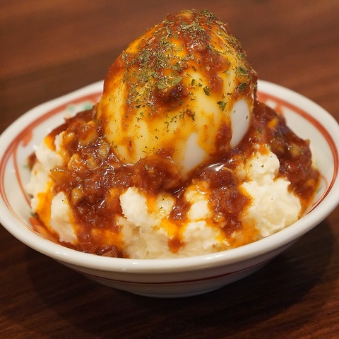 半熟卵を崩して食べてください。