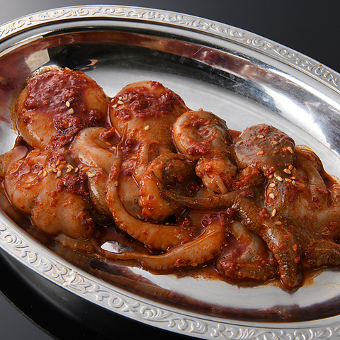 イカと野菜をコチュジャンなどの調味料で炒めたピリ辛の韓国料理