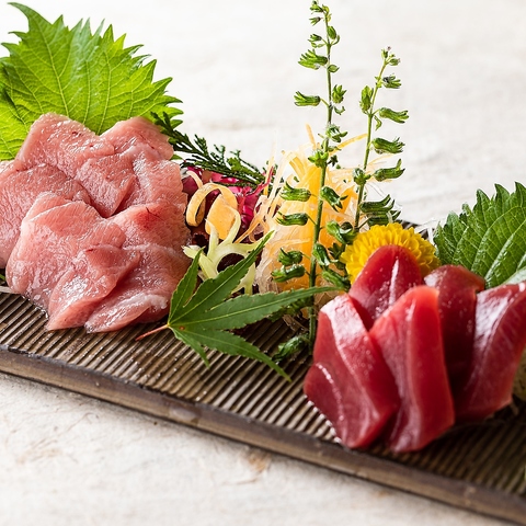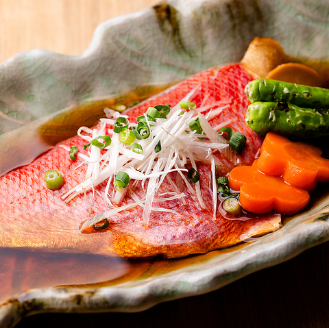 魚義では、豊洲市場から厳選した鮮魚を使用したこだわりの一品料理をお楽しみいただけます。料理長自らが選び抜いた魚介類を使った「刺身盛り合わせ」で、旬の鮮魚を思う存分ご堪能下さい。その日によって変わる焼き魚や煮魚も絶品です。また、「天ぷら盛り合わせ」では、穴子と季節の野菜を揚げたてでご提供します♪