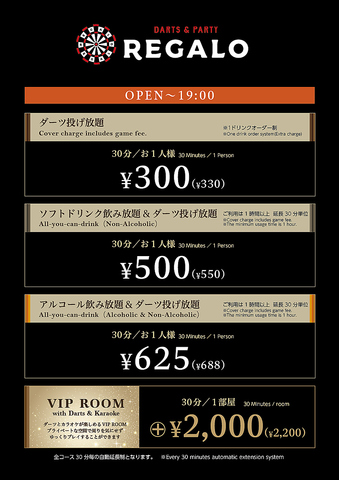 ダーツ&パーティー REGALO レガロ 新宿東口店 お店のこだわり