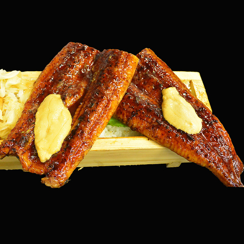 店頭でジュージュー焼く、うなぎおにぎり Eel-ONIGIRI