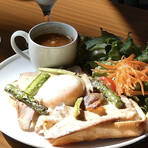 【春期限定】アスパラとローストポークのベネディク・ト【サラダ・ミニスープ付】