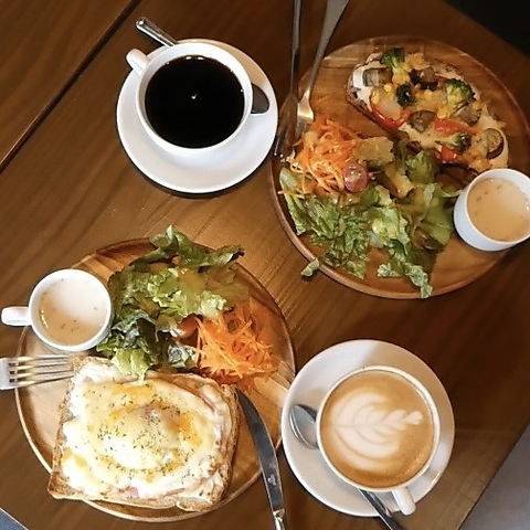 モーニングタイムは、パンに¥200でドリンクセットが付けられる♪トーストプレートセットも人気!