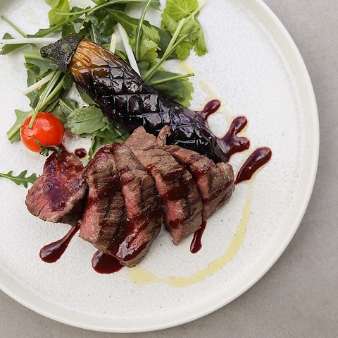 肉の旨みと野菜のフレッシュさが絶妙に調和した一品。国産牛のミディアムレアな焼き加減が肉の旨味を引き立て、季節の野菜が彩りを添える。お肉にも野菜にもこだわる当店だからこその贅沢な味わいをぜひご堪能ください!