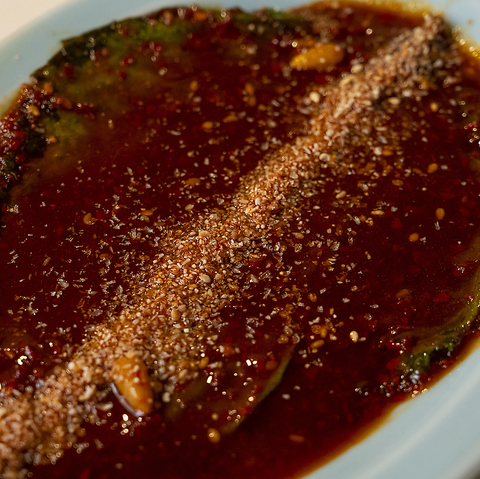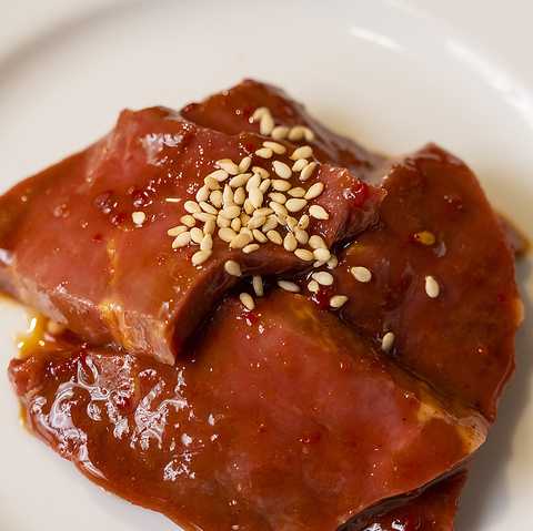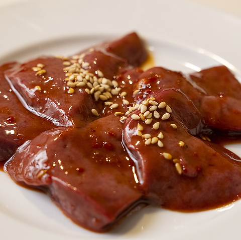 適度な大きさにカットされたレバーです。こちらはたれをたっぷりとつけてお召し上がりください。