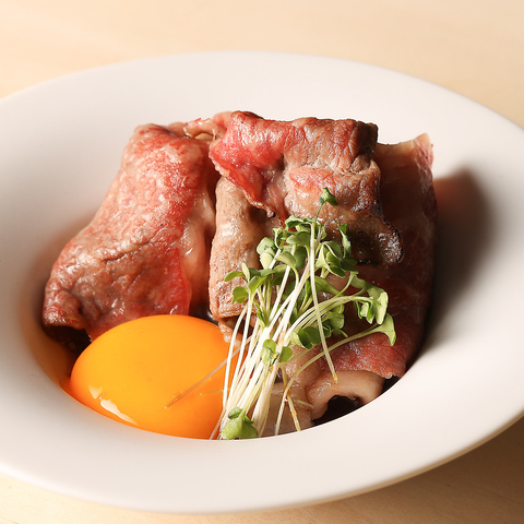 厳選ブランド牛(北海道標茶町産星空の黒牛使用)低温調理の炙りユッケ