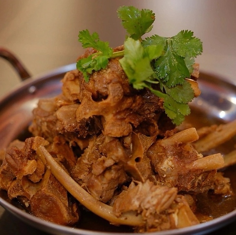 看板メニュー鶏肉煮込み料理。濃いめの味付けが大人気です。学生さんにも大人気。一度は食べたい隠れた人気メニューです。つけ麺と一緒に食べてください