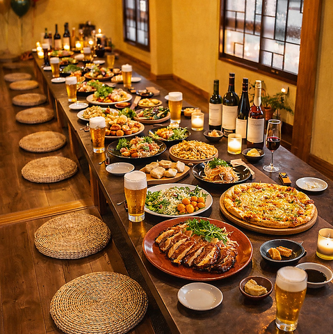 | 掘りごたつ個室 | 28名様×1 | いわき居酒屋、貸切、宴会、歓送迎会、いわき駅前、パーティー、飲み放題、いわき駅前、女子会、誕生日 |