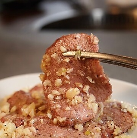 多くのお客様が注文する名物「ニンニク上タン塩」は、病みつきになる美味しさです。盛り上がること必至!