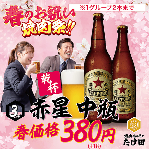 赤星がお得に飲めます!新スタートをきるすべての方をたけ田は応援!!