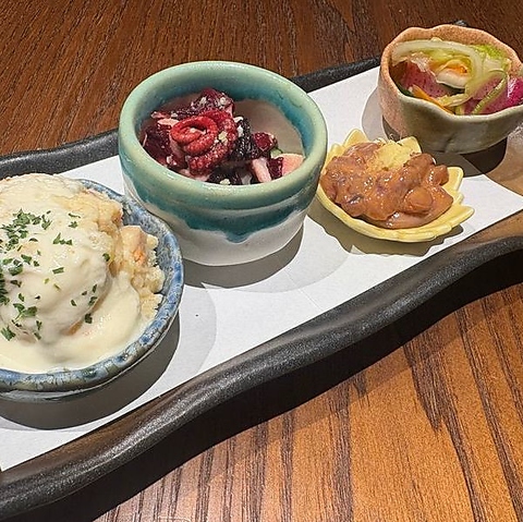 仙台名物の牛たんから、季節によって内容が変わるおばんざい盛りまで、宮城の素材を活かした幅広いラインナップのメニュー♪その他にもオープンから大人気のオリジナル唐揚げの「伊達チキ」や、とろとろになるまでじっくり煮込んだ「肉豆腐」など定番の居酒屋メニューも多数ご用意しております。季節の味わいを活かしたおすすめメニューも必見!