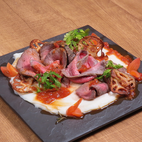 こだわり抜いて作り上げたローストビーフは、【香草を使用した絶妙な味付け】が魅力です!シェフの丁寧な手仕事が光るこの一皿は、特製ソースとの相性も抜群◎肉のジューシーさと香りが、あなたの食欲を刺激すること間違いなし!味・香り・見た目を愉しんでいただき、大切な人との特別なお食事にぜひご賞味ください。