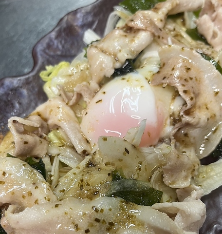 片栗粉でサクサクに揚げられた角煮の唐揚げは温泉卵を付けてご堪能ください。一口サイズが食べやすく、濃厚な味わいとカリッとした食感が楽しめること間違いなし!