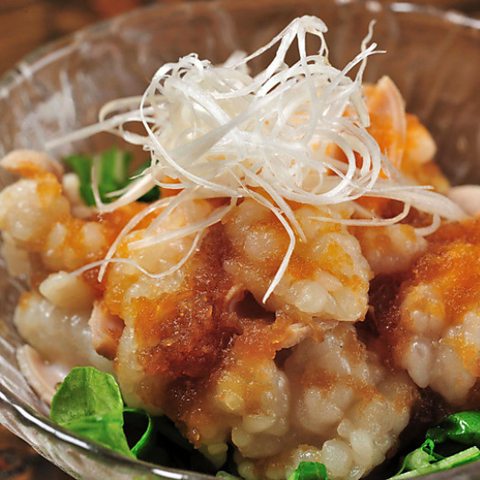 ぷりぷりの和牛小腸を贅沢に使用したモツ鍋は、コク深いスープと絡み合い絶品の仕上がり。野菜もたっぷり入っており、旨味と甘みが溶け込んだ滋味豊かな味わいが広がります。一人前から注文できるので、カウンターでのちょい飲みから宴会や忘年会まで幅広く対応。〆の雑炊やラーメンまで大満足です!