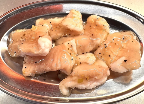 牛の小腸を裏返して脂を閉じ込めた部位で、プリプリとした食感と甘くジューシーな脂が特徴。