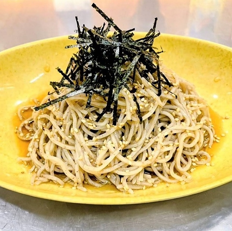 足立製麺所特製 手打ちエゴマ生蕎麦。タレにもエゴマ油を使用した香り高い蕎麦です。