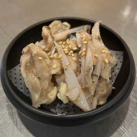 コリコリとした独特の食感が最大の魅力です。ホルモンの中でも特に硬い部位ですが、噛むほどに旨味が増し、クセのない淡白な味わいなので、コラーゲンやカルシウムも豊富に含まれています。