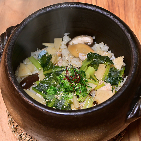 春の香りがふわりと広がる、今だけの特製土鍋ご飯です。旨みたっぷりの鶏肉と、旬のたけのこのシャキシャキとした食感が相性抜群。彩り鮮やかな小松菜を添えて、土鍋でふっくらと炊き上げました。おこげの香ばしさも合わせてお楽しみください。