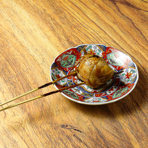 ぷちっと弾ける濃厚なきんかん(卵黄)を、旨みたっぷりのお肉でくるりと巻いて香ばしく焼き上げました。肉のジューシーな脂と、口の中でとろけるまろやかな卵黄が絡み合う、たまらない味わいです。熱々のうちにお召し上がりください!