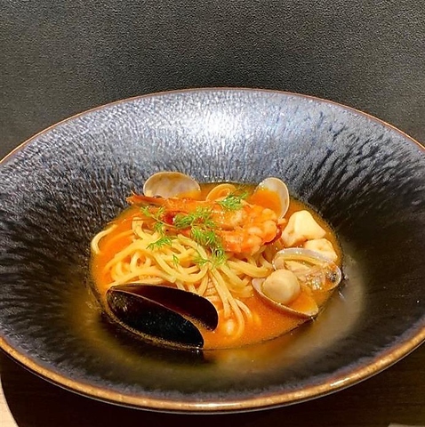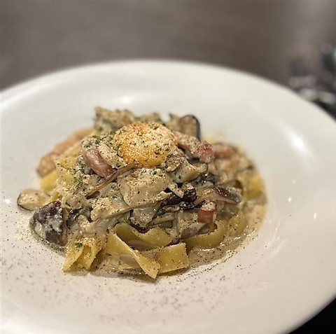 当店の生パスタは焙煎した胚芽全粒粉を使用。水を一切使わず、卵の持つ水分だけで製麺しているのでモチモチ!中細麺の「タリオリーニ」はあっさりとしたソースやスープパスタ等との相性が良く、平打ち麺の「フィットチーネ」は濃厚なクリーム系のソースによく絡みます◎