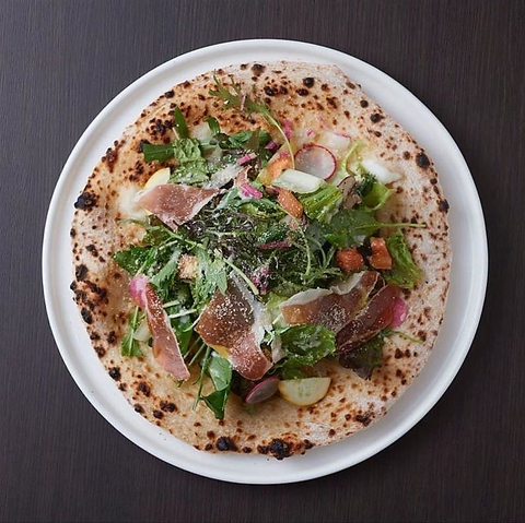 本場ナポリ「Caputo社」の粉を使ったピッツァの生地は、手ごね仕込み。粉の特徴を活かすため湿度と温度にこだわり、絶妙な食感を楽しめる厚さで提供します◎上下500度、日本製の石窯で一瞬で焼き上げるので、地元食材のフレッシュさと生地の香ばしさを楽しめます!