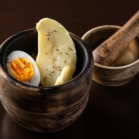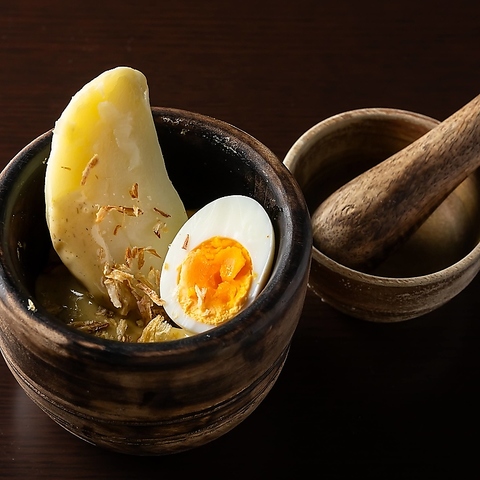 半熟卵とマヨに痺れる麻辣の刺激。クセになる新感覚の濃厚系の前菜です。