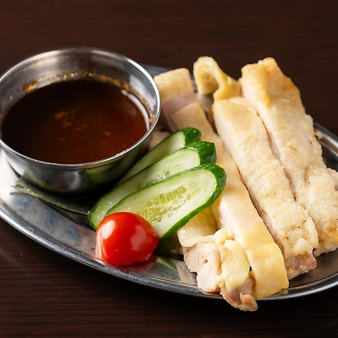低温で仕上げたしっとり蒸し鶏。お酒にぴったりなタイ式カオマンガイの米なし小皿仕様。
