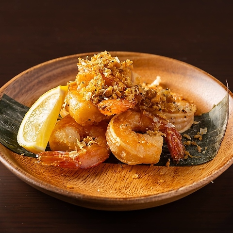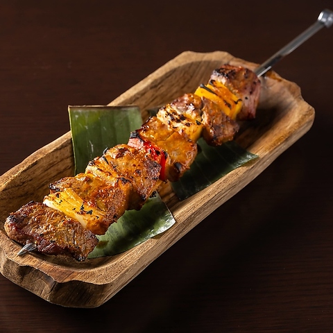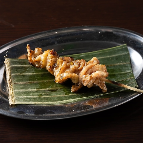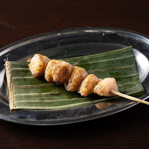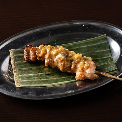鶏ミンチにプラウンチリを混ぜ込んで焼き上げました。フワフワつくねにエビの香ばしさと辛味がマッチした焼鳥です。