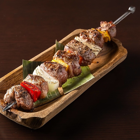 スパイスと香草で香ばしいチキンを豪快に串焼き。